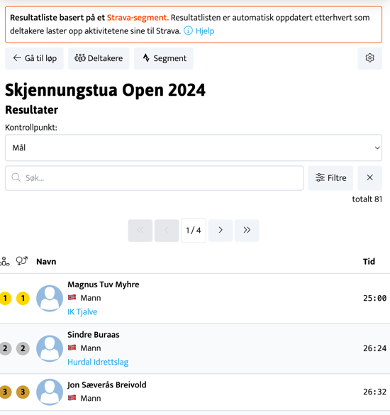 Klikk på relevant løp (Moseby Invitational)